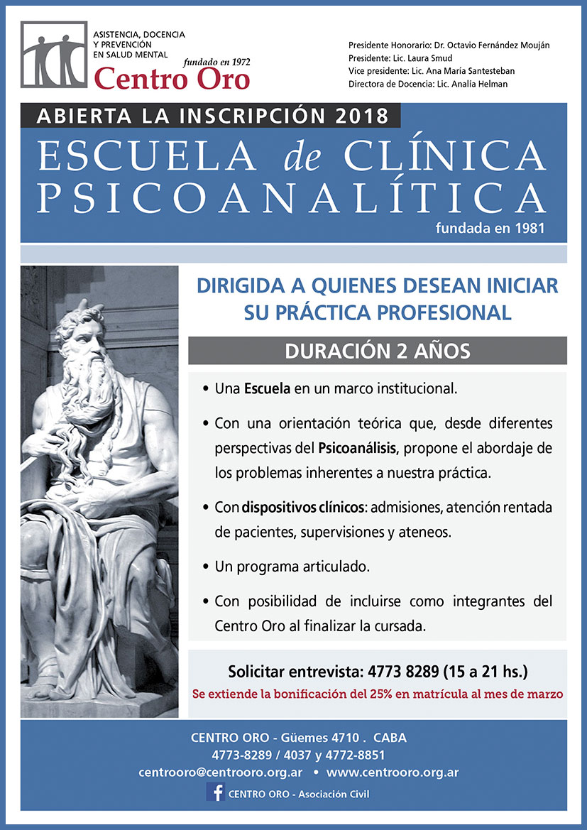 Escuela de Clínica Psicoanálitica – ABIERTA LA INSCRIPCIÓN 2018 – ¡25% DE DESCUENTO EN LA MATRÍCULA DURANTE MARZO!